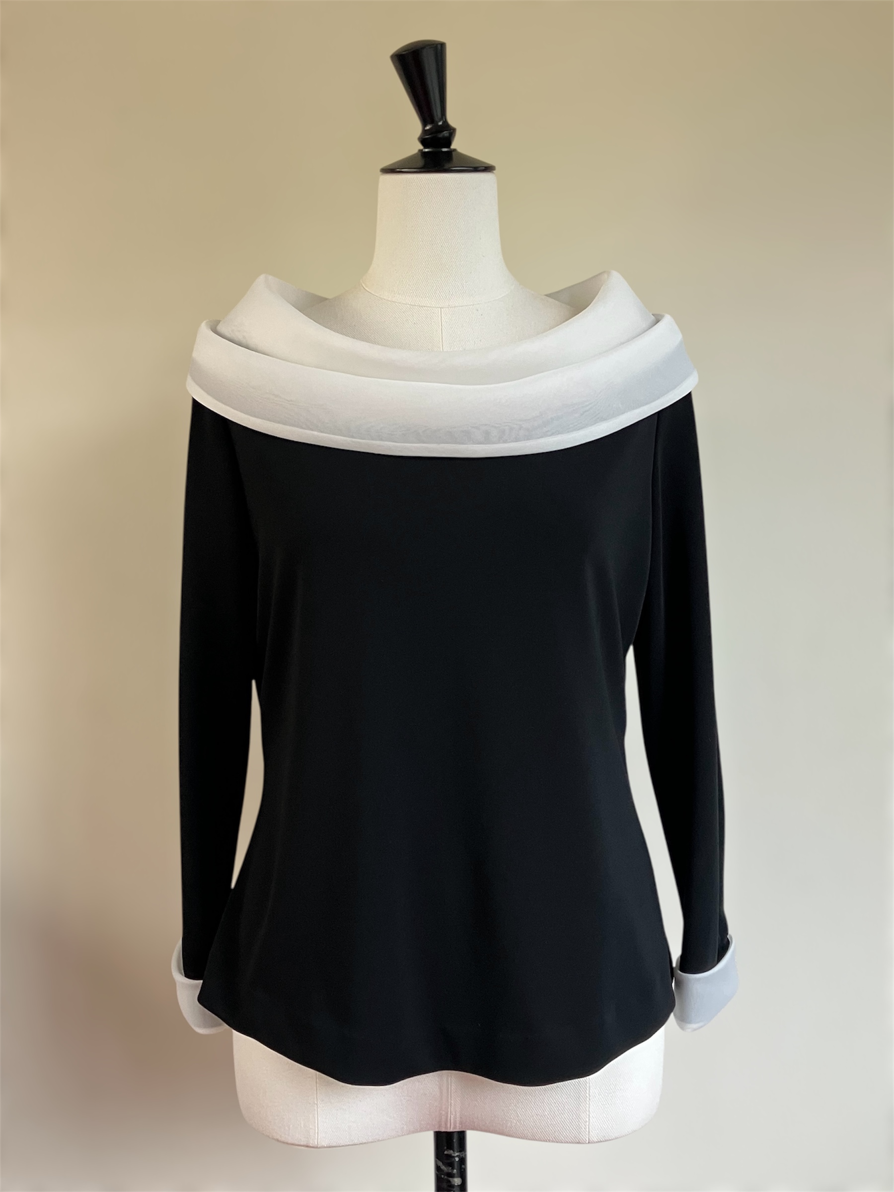 v-8509 ¥65000 Online Shop > アトリエショップのご案内 > Blanc Nature(ブランナチュール)Size: FreeColor: 90(黒x白)Price: ¥65,000 + TAXMaterial: 表地 POLYESTER 95% ・ POLYURETHANE 5% 別生地 POLYESTER 100%
